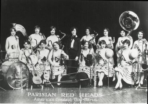 En la época del jazz y durante la década de 1930, las bandas “all-girl”, tales como The Blue Belles, the Parisian Redheads (posteriormente the Bricktops), Lil-Hardin’s All-Girl Band, The Ingenues, The Harlem Playgirls, Phil Spitalny’s Musical Sweethearts y Helen Lewis and Her All-Girl Jazz Syncopators eran muy populares. En los principios del cine sonoro se hicieron decenas de películas de estilo vodevil con grupos “all-girl”, especialmente cortometrajes promocionales para Paramount y Vitaphone.