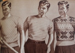 Tras la guerra se abrieron las puestas para el uso de prendas más informales en la moda masculina tales como chalecos y jerséis de punto.