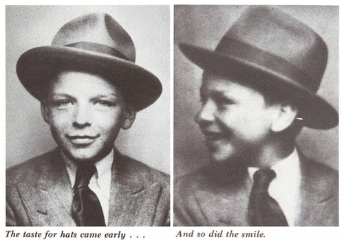 Durante su infancia y adolescencia, Frank desarrolla dos facetas características de su futura personalidad: un carácter, recordaban sus maestros, fanfarrón y revoltoso, ayudado por su afición al boxeo heredada de su padre; y su afición por la música, que a los 9 o 10 años lo llevó a cantar en la taberna de su padre acompañándose por una pianola10 (más adelante, entonaría canciones acompañado de un ukelele). La mezcla de ambos rasgos llevó a Frank a intentar imitar, tanto en el estilo como en la forma de vestir, a los grandes cantantes del momento, como Bing Crosby, su principal modelo, o Al Jolson.