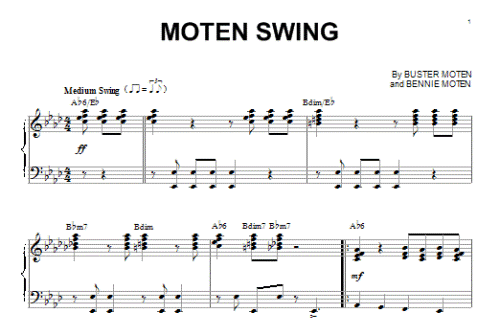 “Moten swing” (originalmente ” Moten’s Swing “) es una canción del año 1932 interpretada por Bennie Moten and the Kansas City Orchestra. Moten y su orquesta, que incluía a Count Basie al piano, lograron un gran éxito con el tema, aunque la canción se terminó asociando más con Basie Count Basie Orchestra, que la grabó en 1940.